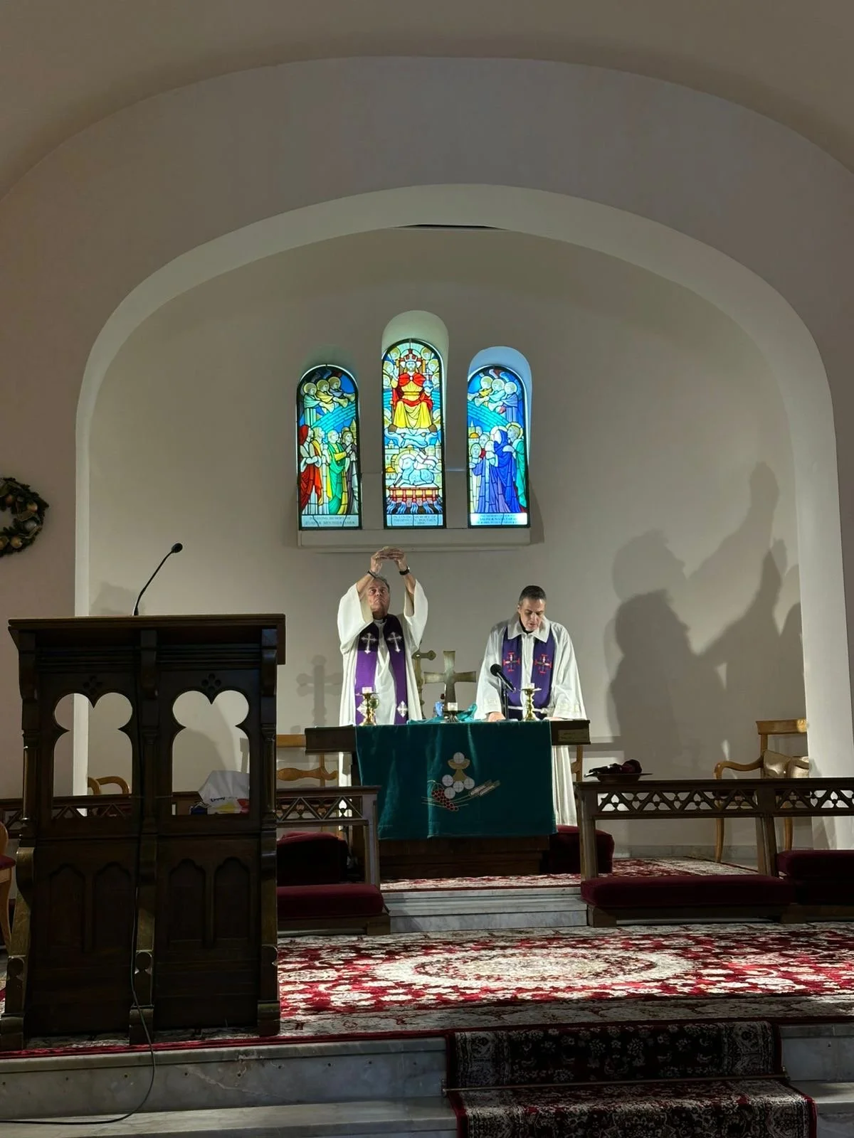 Redeemer Church i Jerusalem. Luthersk kirke i Gamlebyen. Der har jeg hatt flere gudstjenester sammen med svenske og danske prester. Ved dette besøket var vi i Birgitta kapellet på STI. Vi var færre, og jeg var alene prest.