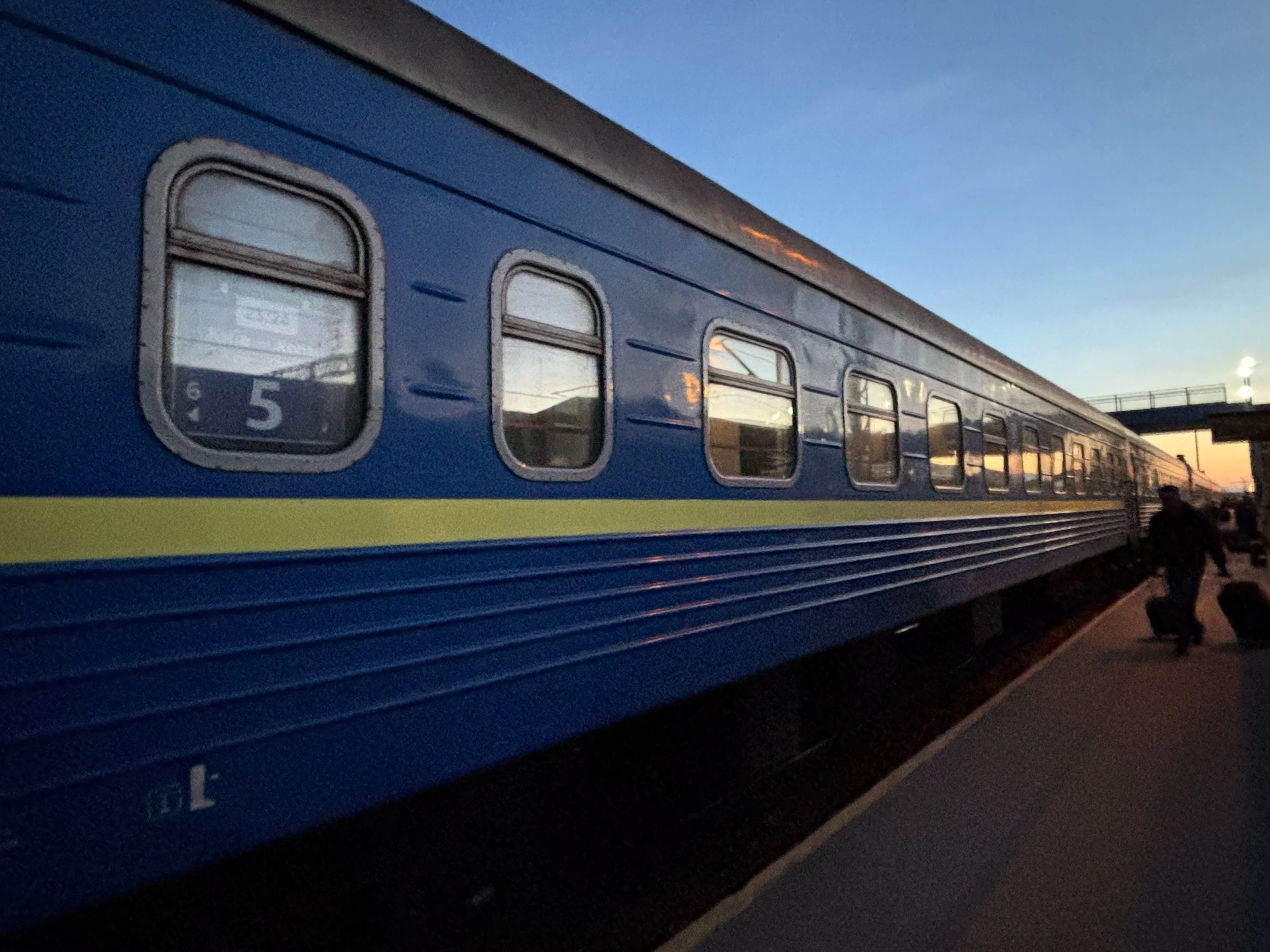 Det som før var en enkel flytur, er i dag en lang togreise. Jeg tok tog fra Warszawa til grensebyen Chelm, og nattoget videre til Kyiv. På grensen ble det skifte av tog. Det skyldes at selve togsporet er bredere i Ukraina enn i nabolandet Polen. På grensen tok det tid med passkontroll på begge sider, men heldigvis kom politi og tollere om bord på toget slik at jeg slapp å gå ut i den kjølige kvelden.